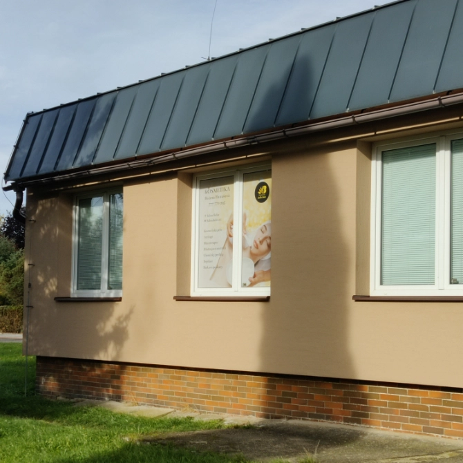 Zvonek najdete u hlavního vchodu do budovy, vstupní dveře do salónu pak vlevo od hlavního vchodu.